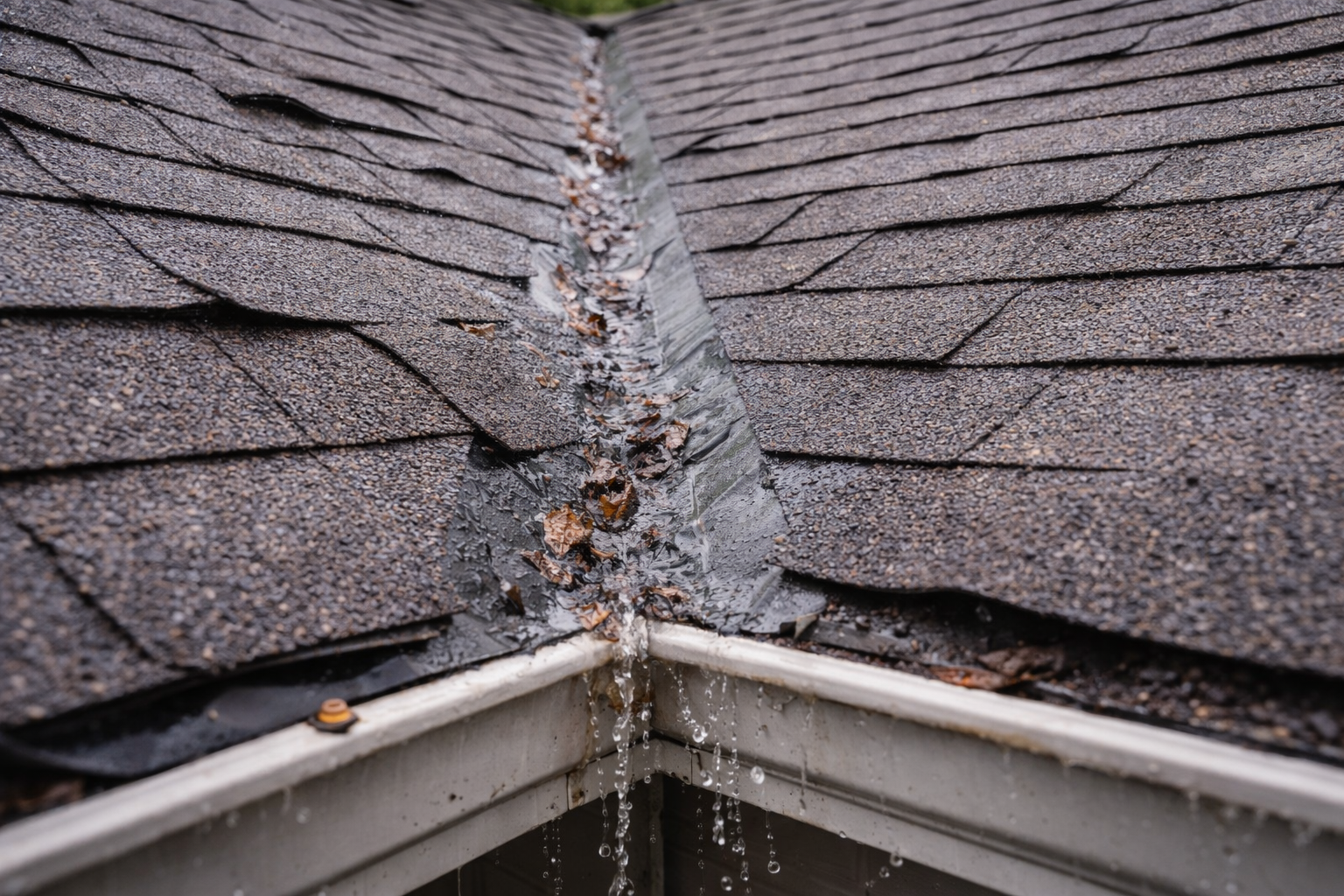 Valleys are V-shaped channels where two roof planes meet, directing heavy water flow that makes them leak-prone. In Southwest Ohio’s heavy rainstorms, improperly installed valley